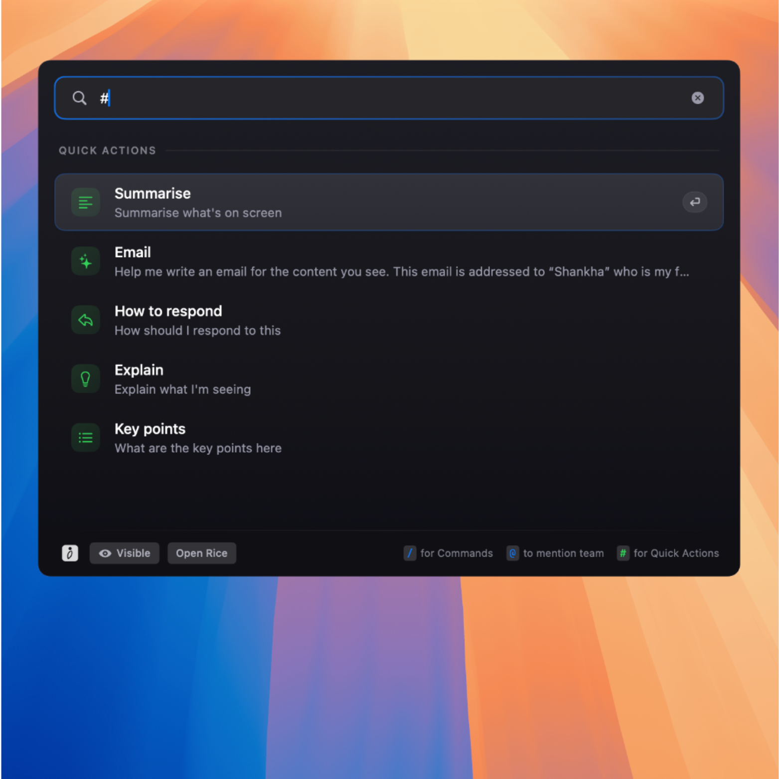 Rice evolves with you, learning your patterns and pushing what’s next into now.